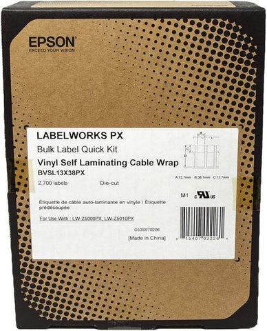 Epson LW-Z Series Bulk Roll - Self-Lamination Wire Wrap - Die Cut (13mm x 38mm) 2700 Labels/Roll - Black on White - BVSL13X38PX