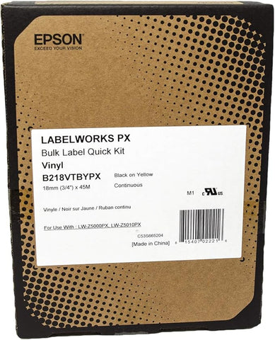 Epson LW-Z Series Bulk Roll - Vinyl Continuous 3/4" (18mm) x 147.6 ft Black on Yellow Tape - B218VTBYPX
