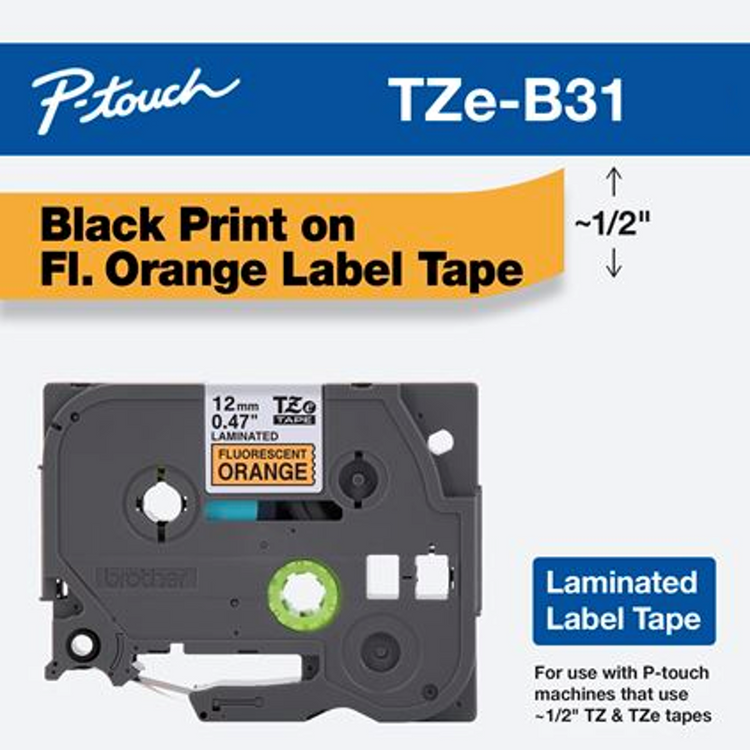 Brother 1/2" (12mm) Black on Fluorescent Orange Tape - TZeB31