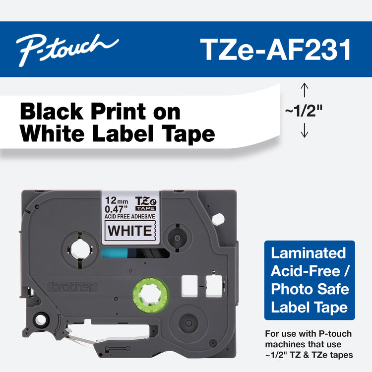 Brother 1/2" Black on White "Acid Free" Tape - TZeAF231
