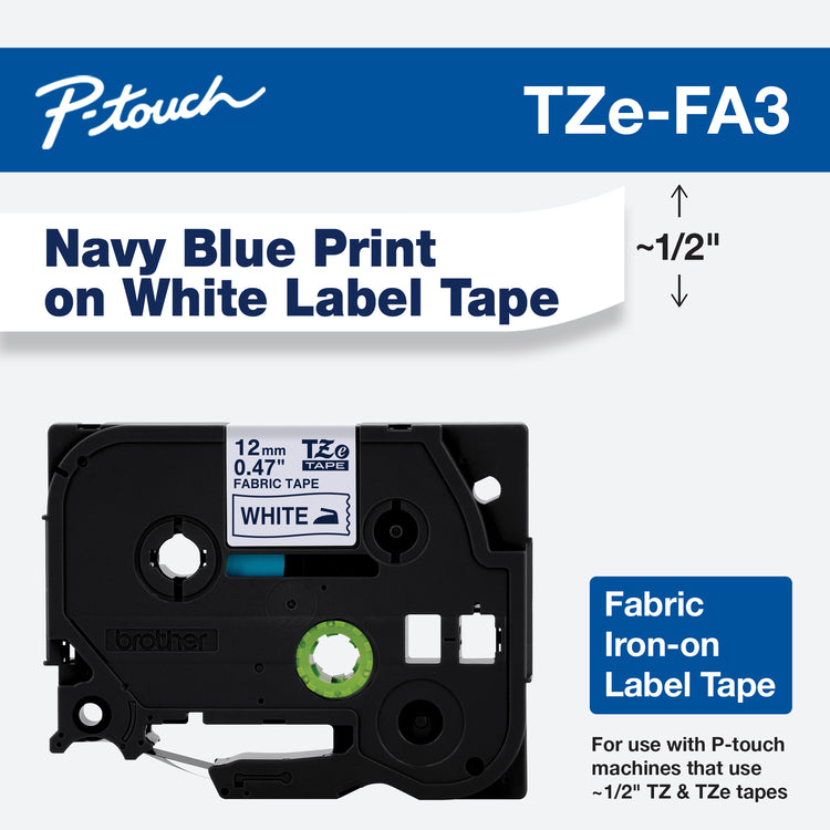 Brother 1/2" Blue on White Fabric Iron-On Tape - TZeFA3