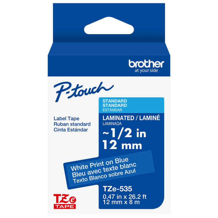 Brother 1/2" (12mm) White on Blue Tape - TZe535