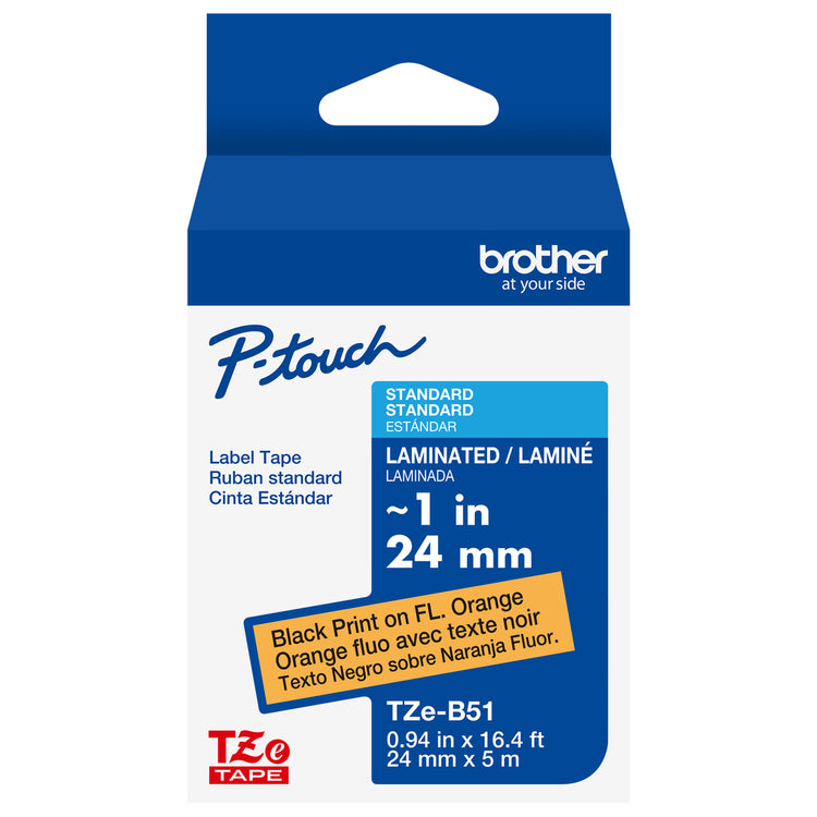 Brother 1" (24mm) Black on Fluorescent Orange Tape - TZeB51