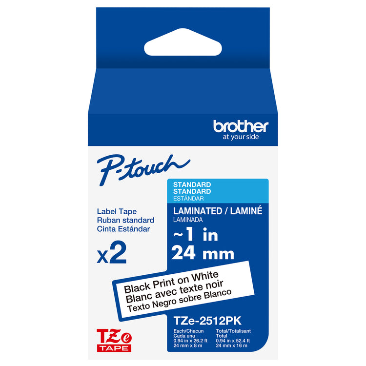 Brother 1" Black on White Tape (2 Pack) - TZe2512PK