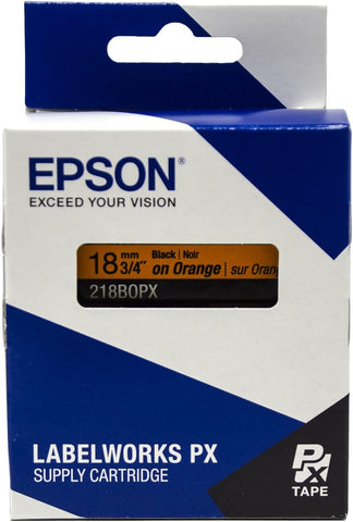 Epson 3/4" Black on Orange Tape - 218BOPX