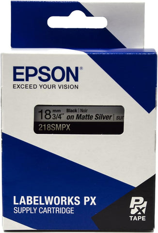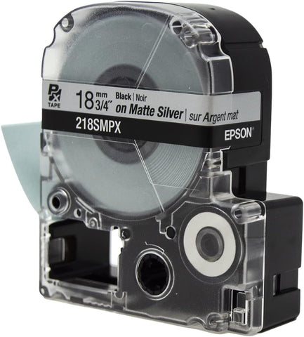 Epson 3/4" Black on Silver Matte Tape - 218SMPX