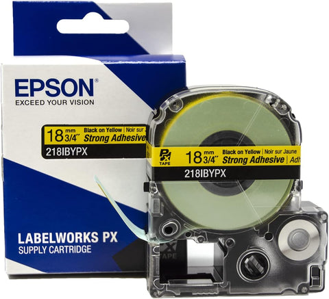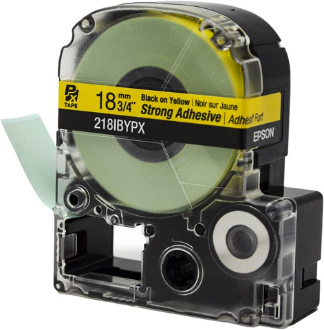 Epson 3/4" Black on Yellow "Strong Adhesive" Tape - 218IBYPX