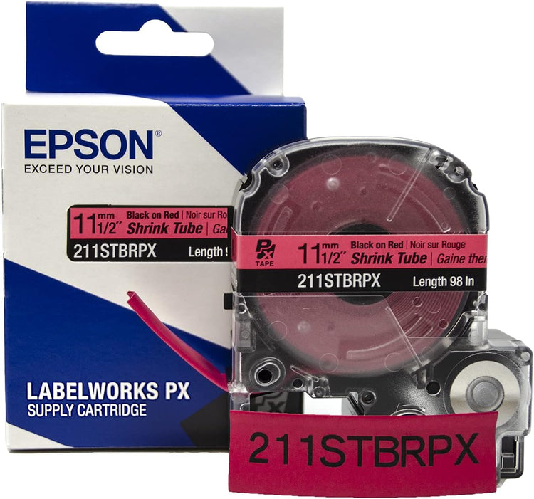 Epson 1/2" Black on Red Shrink Tube - 211STBRPX