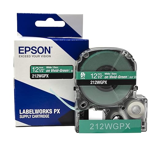 Epson 1/2" White on Green Tape - 212WGPX