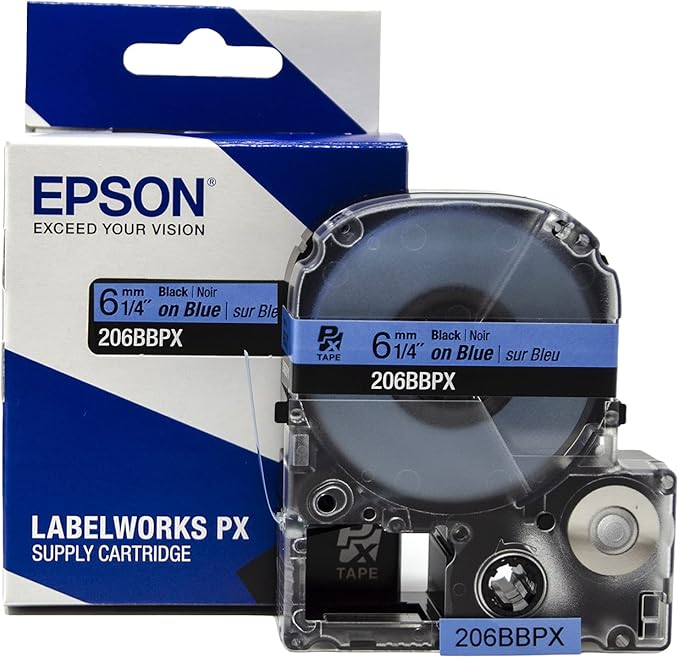 Epson 1/4" Black on Blue Tape - 206BBPX