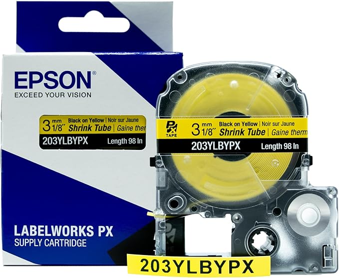 Epson 1/8" Black on Yellow Shrink Tube - 203YLBYPX (Formerly 203B20BYPX)