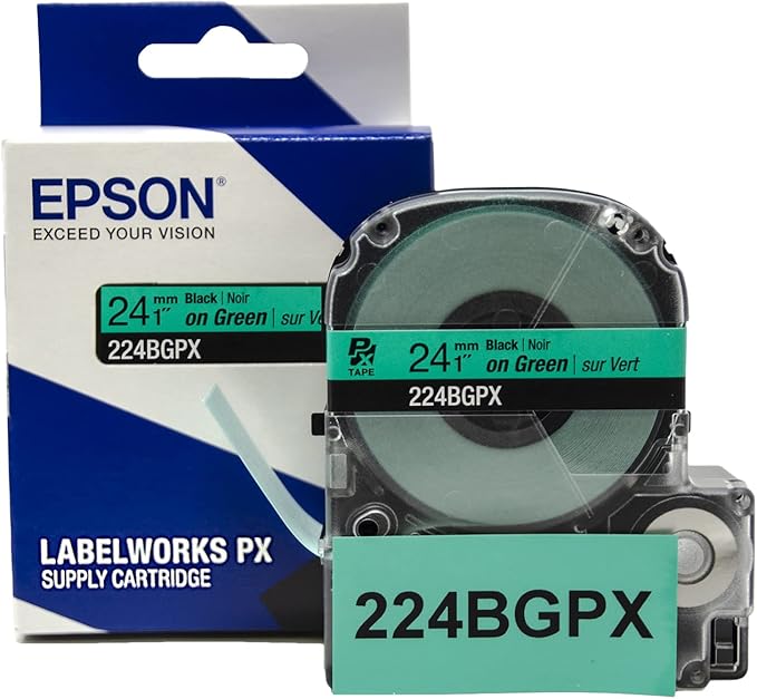Epson 1" Black on Green Tape - 224BGPX