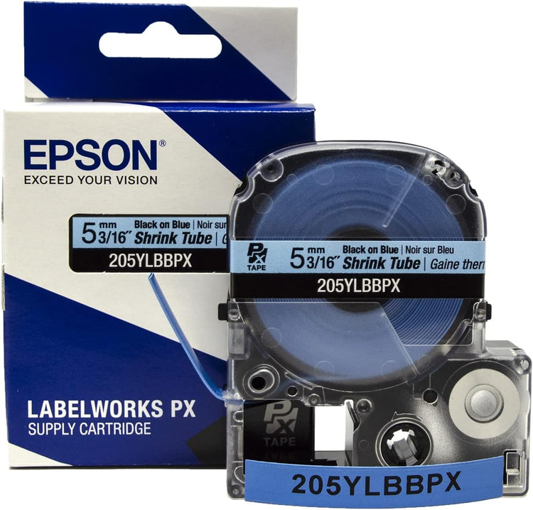 Epson 3/16" Black on Blue Shrink Tube - 205YLBBPX