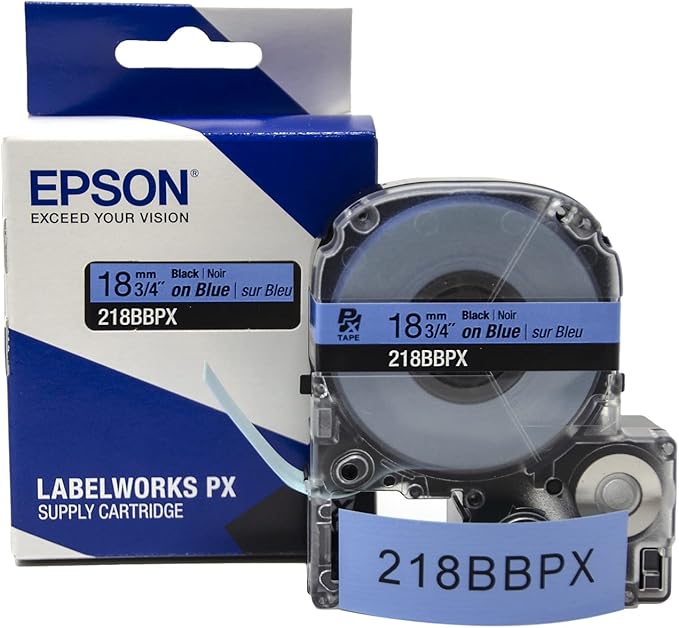 Epson 3/4" Black on Blue Tape - 218BBPX