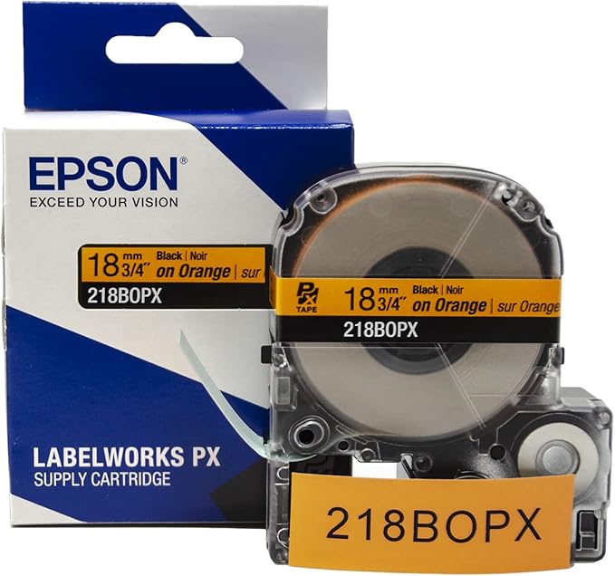 Epson 3/4" Black on Orange Tape - 218BOPX