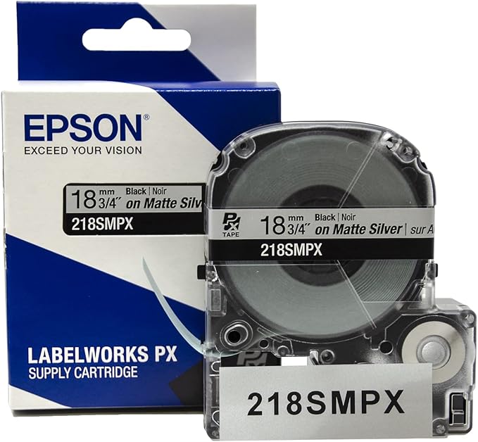 Epson 3/4" Black on Silver Matte Tape - 218SMPX