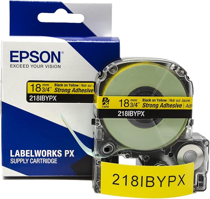 Epson 3/4" Black on Yellow "Strong Adhesive" Tape - 218IBYPX