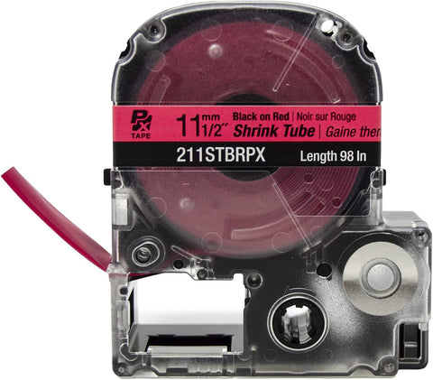 Epson 1/2" Black on Red Shrink Tube - 211STBRPX