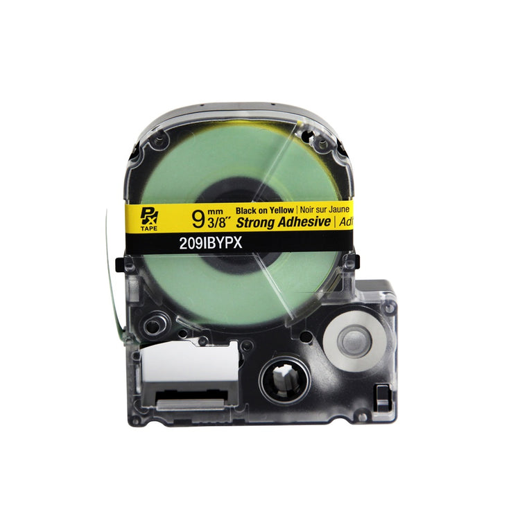 K-Sun 3/8" Black on Yellow "Strong Adhesive" Tape - 209IBY