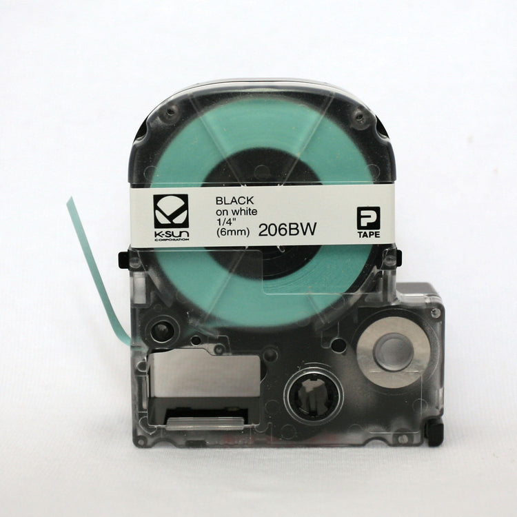 K-Sun 1/4" Black on White Tape - 206BW