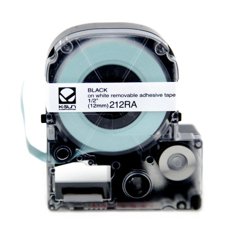 K-Sun 1/2" Black on White "Removable Adhesive" Tape - 212RA