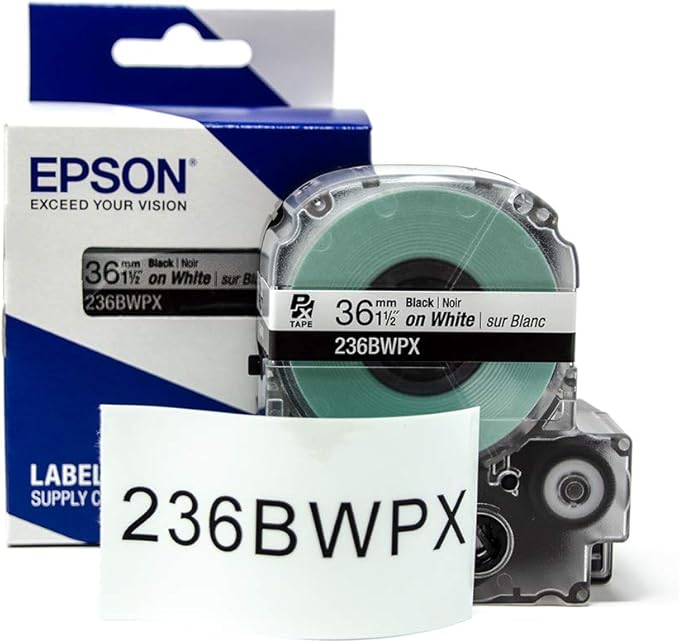 Epson 1-1/2" Black on White Tape - 236BWPX