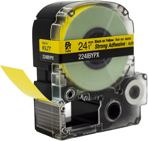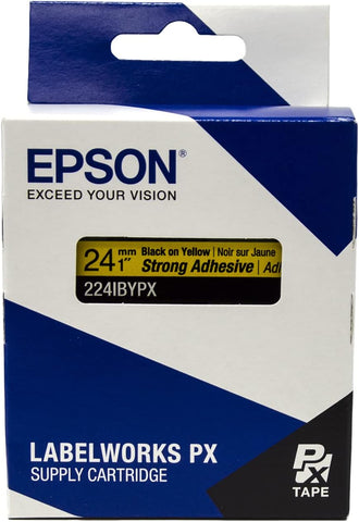 Epson 1" Black on Yellow "Strong Adhesive" Tape - 224IBYPX