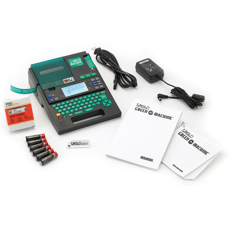 The K-Sun GREEN MACHINE® is the most advanced and eco-friendly electronic label, heat-shrink tube, and bar-code printer on the market. A new high-intensity 16-character, 4-line backlighted display for easy identification in all lighting conditions. Unique, easy font size/style direct keys streamline selection from among 14 styles and 7 sizes. Hot keys for wire-wrap, patch panels and flagging simplify electrical, cable and wire identification. Made of industrial grade high-impact plastic, the GREEN MACHINE® is designed for field or desktop use. In addition to auto and manual tape-cutting features, the exclusive PeelGuard® finisher rounds corners for ultimate label durability and professional appearance. Six bar-code formats, 1000+ symbols and multiple design effects increase label readability and impact. Auto alphanumeric sequencing plus repeat and mirror printing add to the flexibility of label and heat-shrink tube creation.